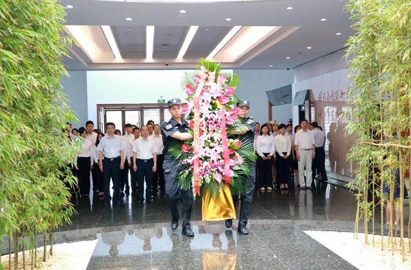 上午九時(shí)許,在陳麟輝館長的陪同下,全體與會同志緩步來到展廳中央,向陳云塑像敬獻(xiàn)花籃,表達(dá)對陳云同志的無限緬懷和崇敬之情。